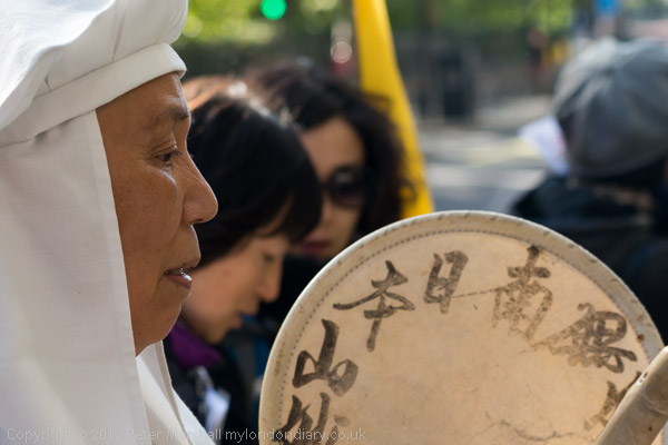 It is a very polite protest, with quiet drumming and prayers and handing out leaflets