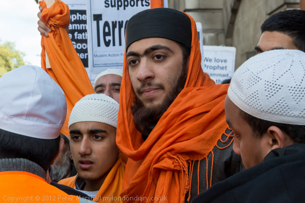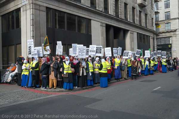I had thought there were no women at the protest, but then saw this block beyond where the men were saying prayers