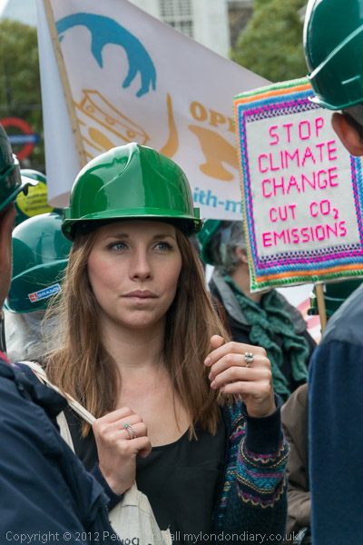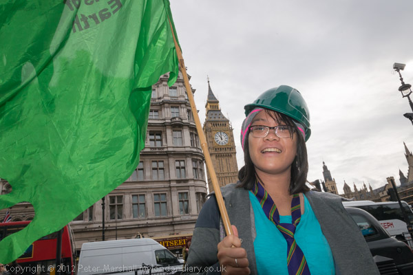 I had to ask this woman with a Friends of the Earth flag to stay where she was so I could take her picture