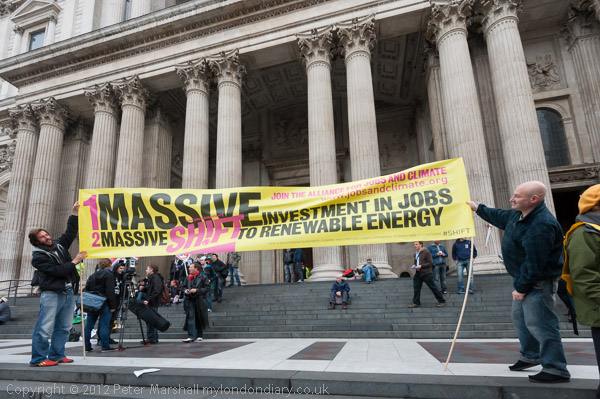 The main banner called for a Massive Shift to invest in jobs and renewable energy