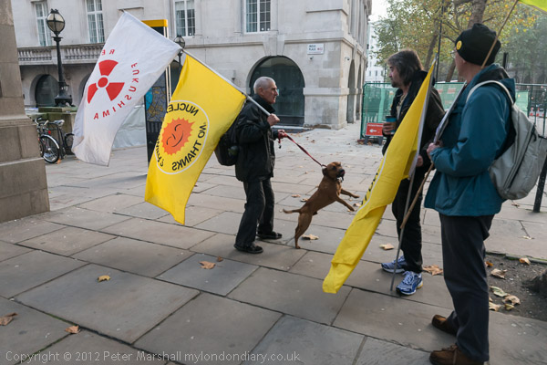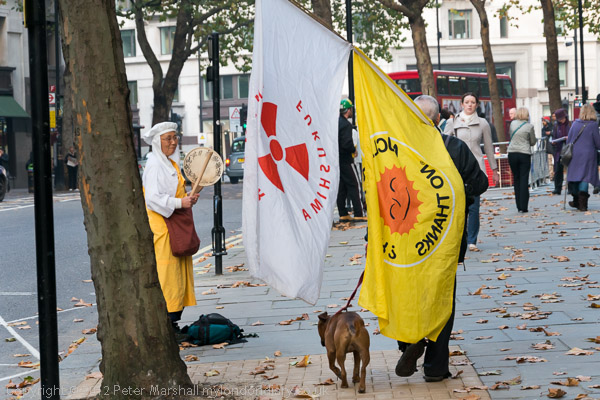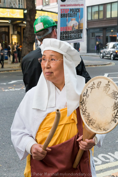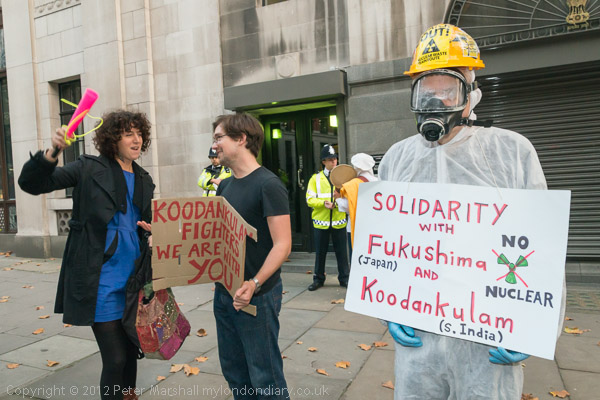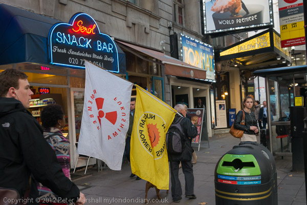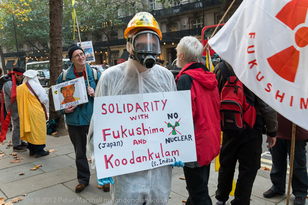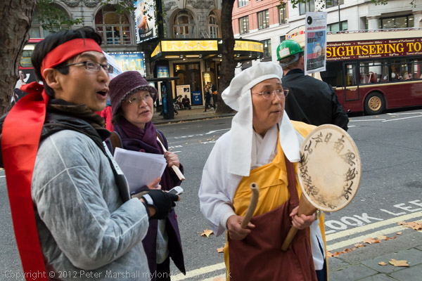 Japanese protesters also take part in the weekly protests outside the Japanese embassy against Fukushima