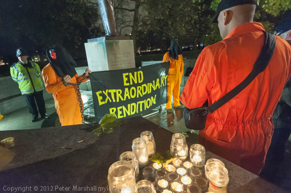 By now there were over 50 protesters and they decided they would march to Parliament, and that on their way they would take advantage of the large crowd of media waiting outside the Queen Elizabeth II Conference centre for the publication of the Leveson report.