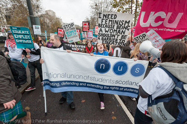 NUS Scotland were at the front of the march as it finally set off from Temple
