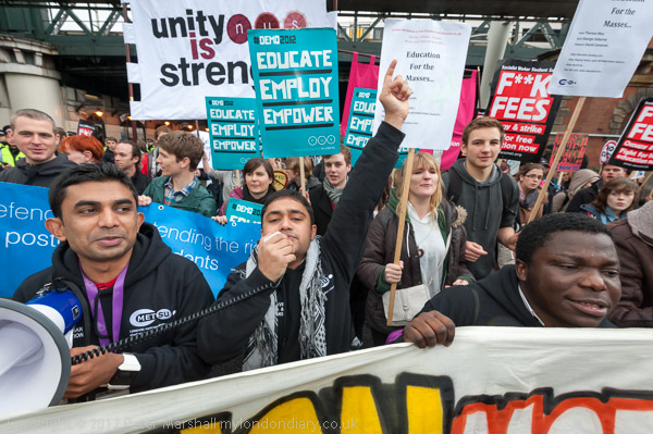 Overseas sutdents from London Met marching along the embankment