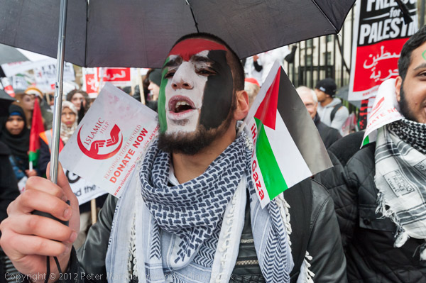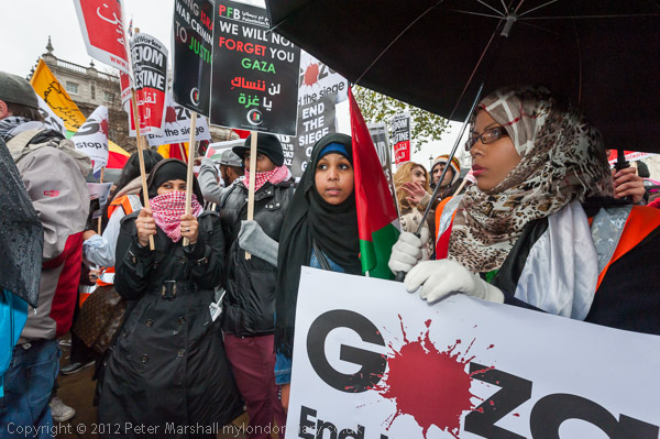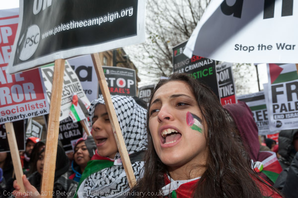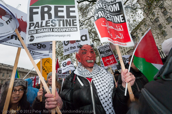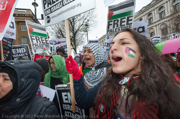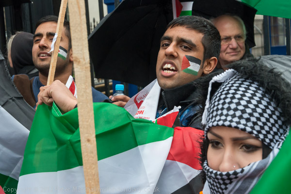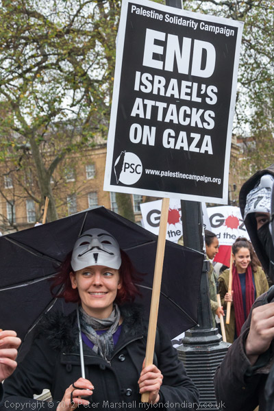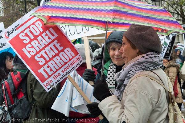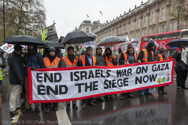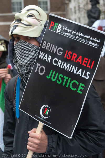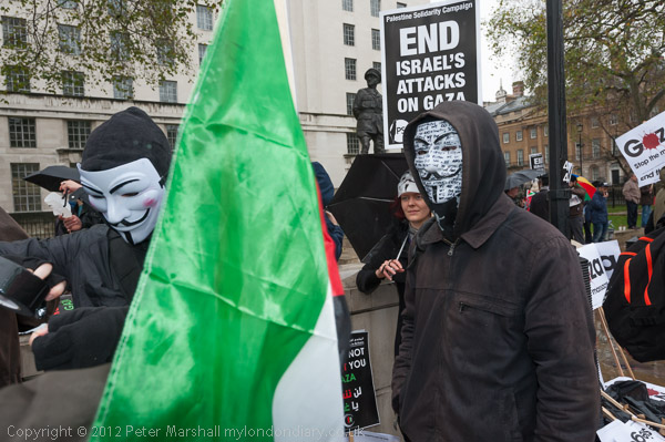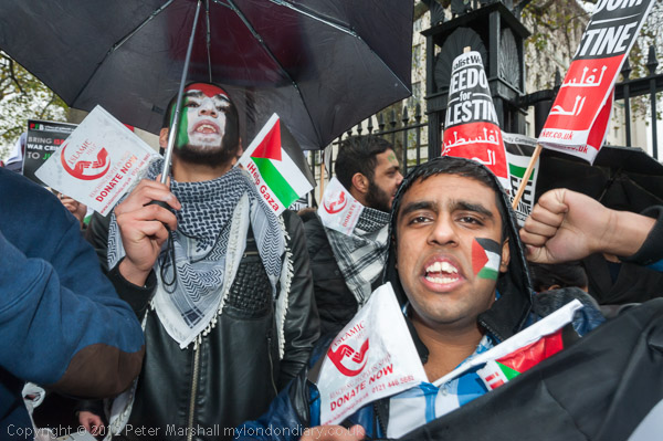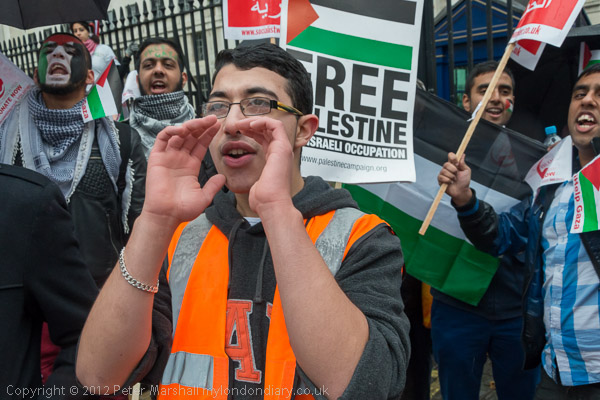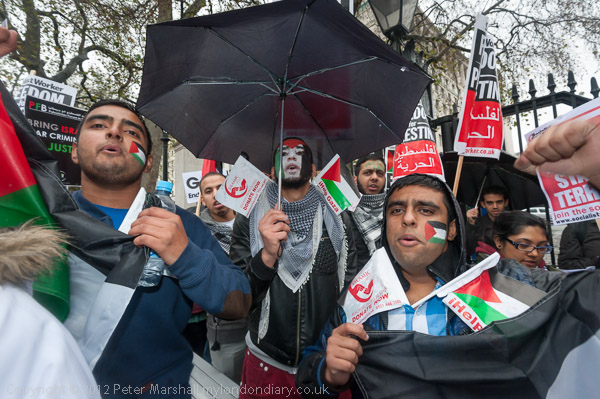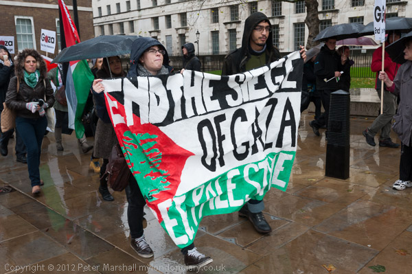 The marchers gathered opposite Downing St and there was some spirited chanting for Palestine to be free