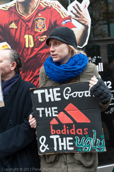 Getting ready for the protest outside Adidas on Oxford St