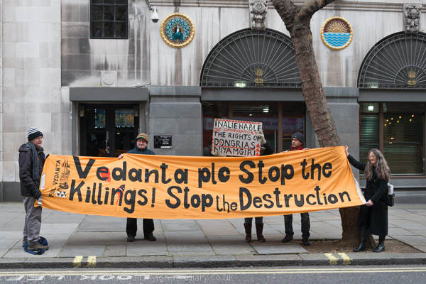 'Vedanta plc Stop the Killlings! Stop the Destruction' banner outside India House