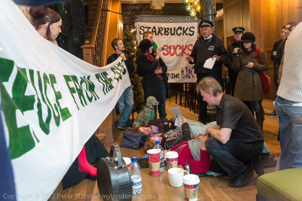 At Vigo St I could only photograph the occupied Starbucks through the windows
