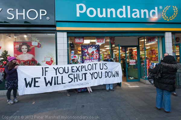 The next stop was Poundland, where they held the banner next to the door and handed out flyers