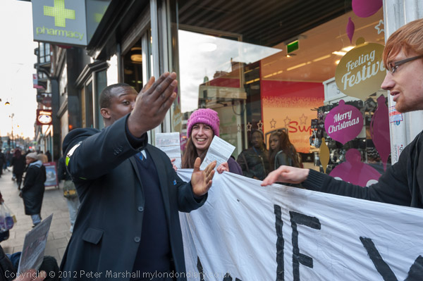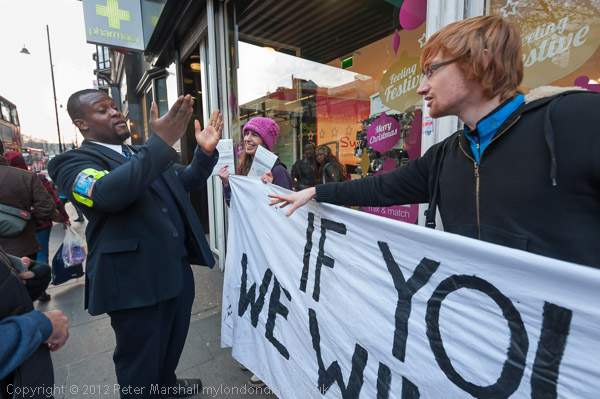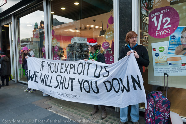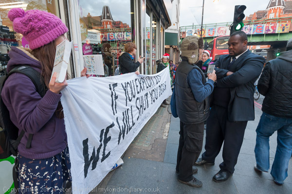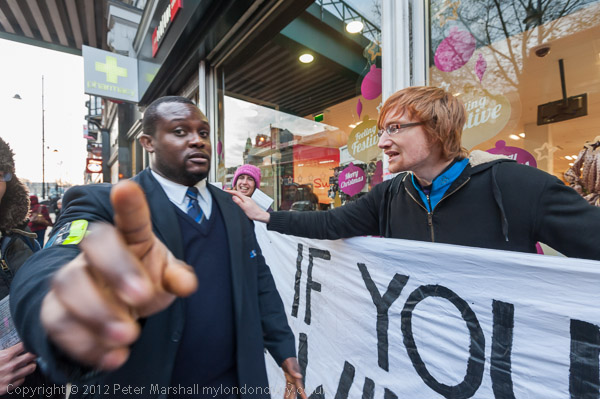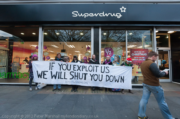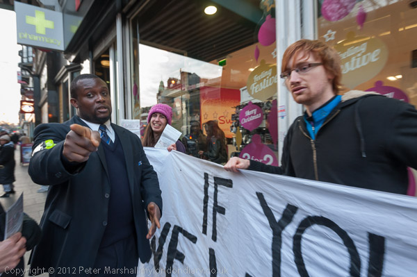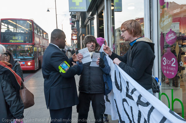 At Superdrug a security guard came out and told the protesters they were not allowed to protest on the street outside