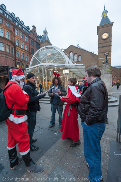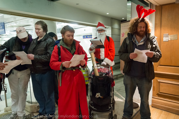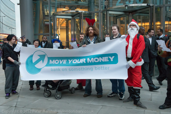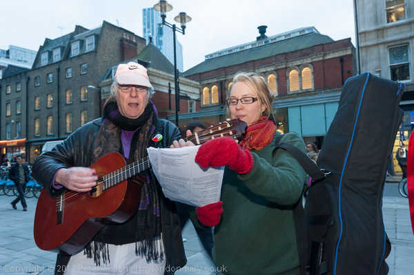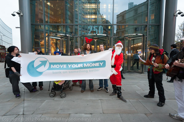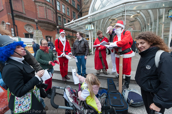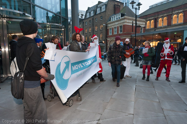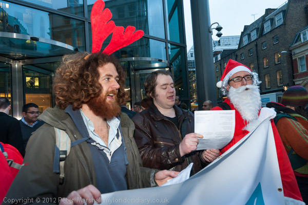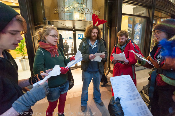The along to sing a carol to the bankers at 125 Bishopsgate