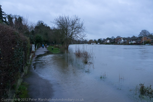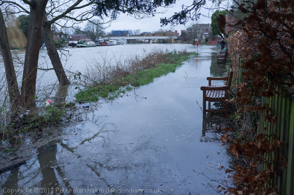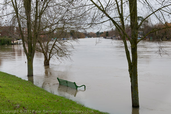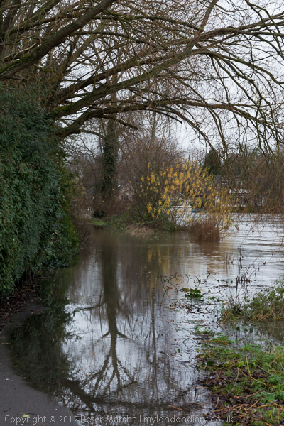 ![]() The seats at Old Windsor were a little wet ![]() And the towpath here was flooded ![]() and so it was at Staines a few days later ![]() Though in most places you could still walk along the edge |