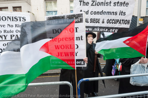 The Orthodox Neturei Karta to whom Zionism is a heresy were there to protest