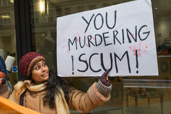 An Indian activist against Vedanta with an uncompromising message 'You Murdering Scum!'