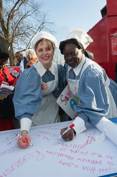 Her smock said 'Our Maternity services'. His said 'Hands off'