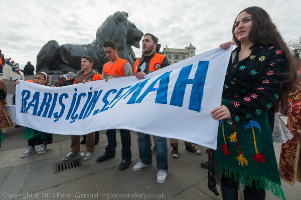 Square.Several thousand Alevi - Turkey's largest religious minority - from around the UK gathered in Trafalgar Square to call for democracy and an end to attacks and religious discrimination in Turkey and for better treatment of immigrants in the UK.