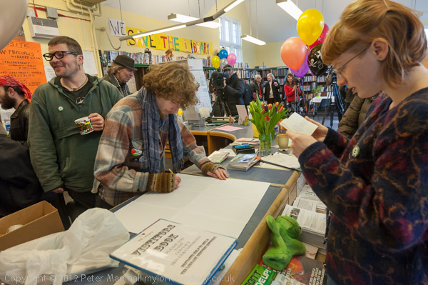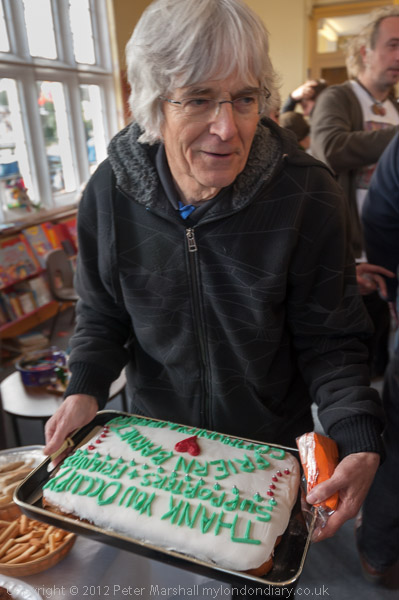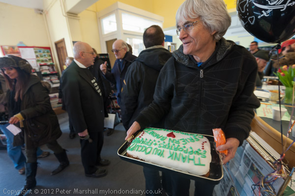 The cake says 'Thank you Occupy Supporters + Friends - Friern Barnet Community Library'