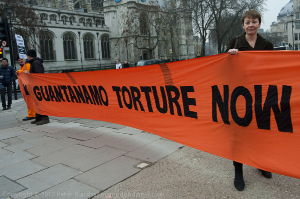 Green MP Caroline Lucas comes over to talk to the protesters and give her support