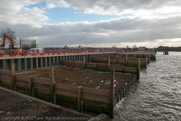 New breakwaters and part of the closed Thames path