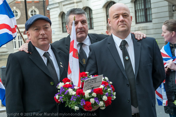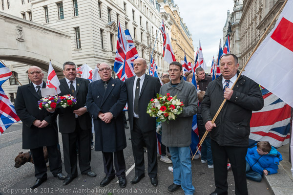 Members of 'Friends of the Somme', with at right a man wearing a BNP tie