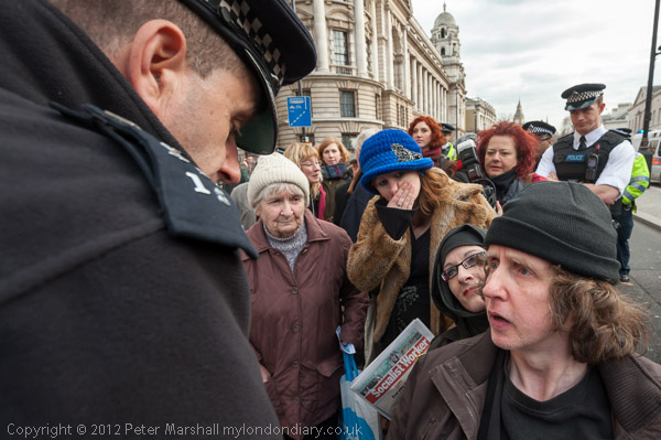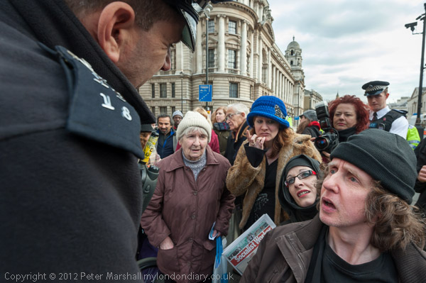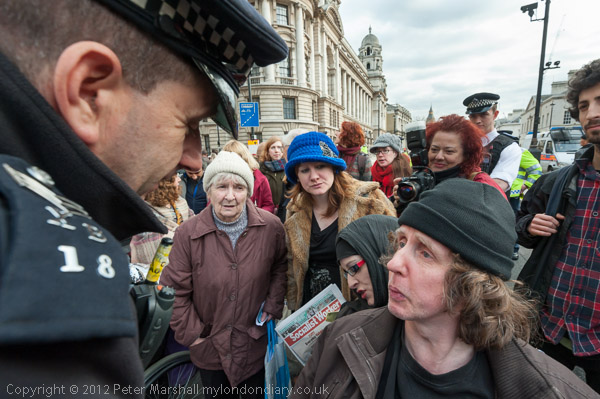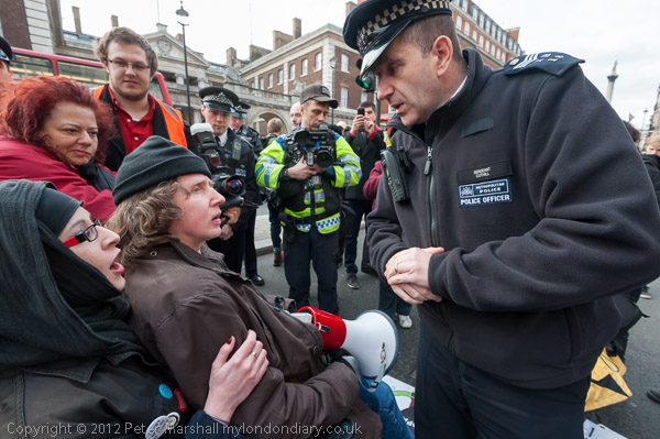 ![]() ![]() ![]() The protesters discuss whether they should leave. Some think they have made their point ![]() but most want to stay for a bit longer ![]() ![]() ![]() ![]() As I get ready to leave, the protesters tell the police they will go in ten minutes. I'm already very late and leave |