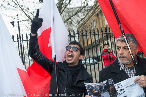 A small group of Bahrainis protested opposite Downing St about David