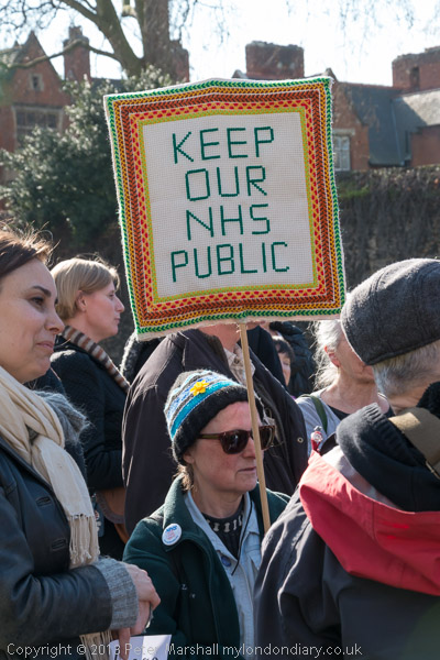 Vampires from Ealing where the performed a mock funeral against hospital closure, names the companies who would profit