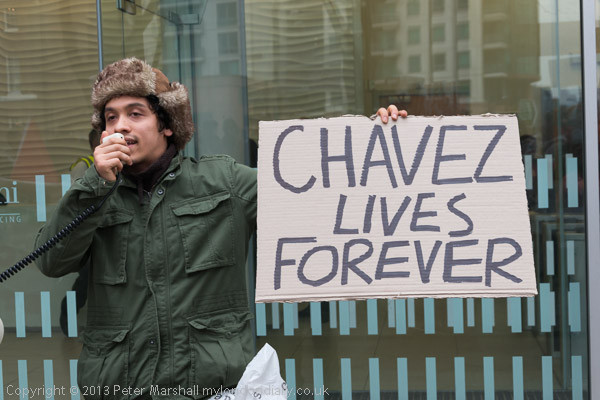 Some at the protest were going on to a vigil celebrating President Chavez, who had died the previous day