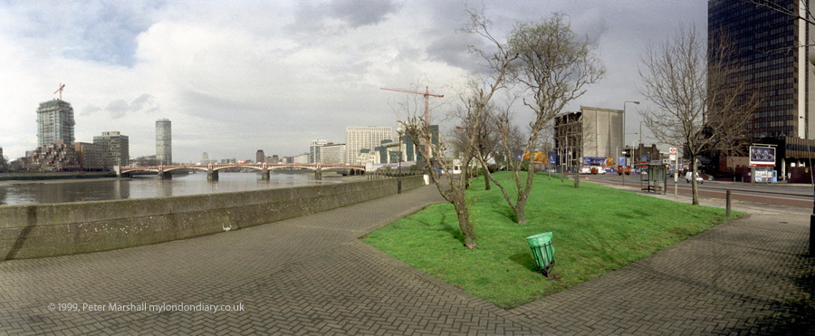 Vauxhall, 1999. A roughly 120 degree film panorama with the same cylindrical perspective, made within a few feet of the same place as the above picture