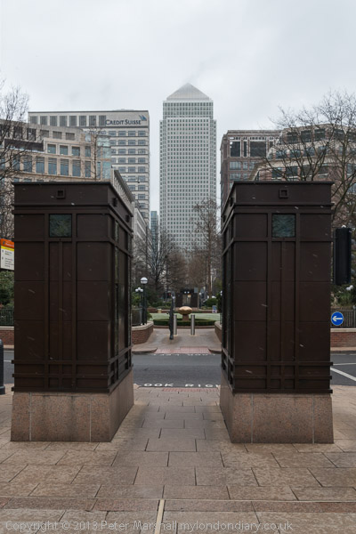 The old gateway to the West India Import Dock - and the Museum of London in Docklands to its right