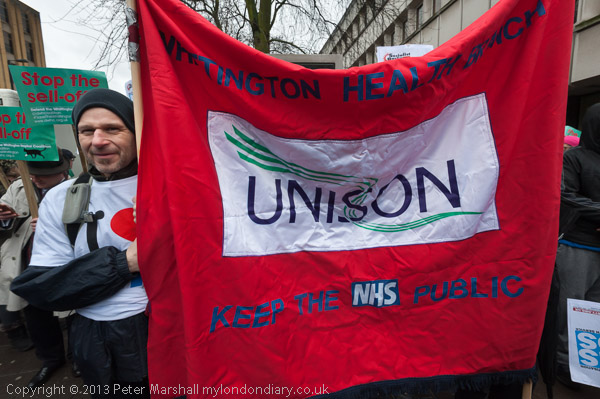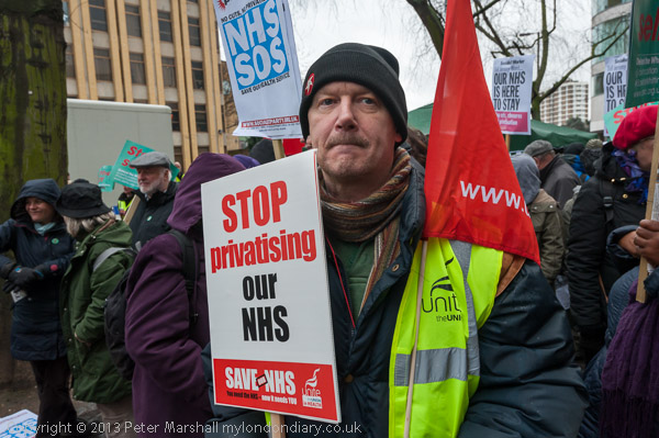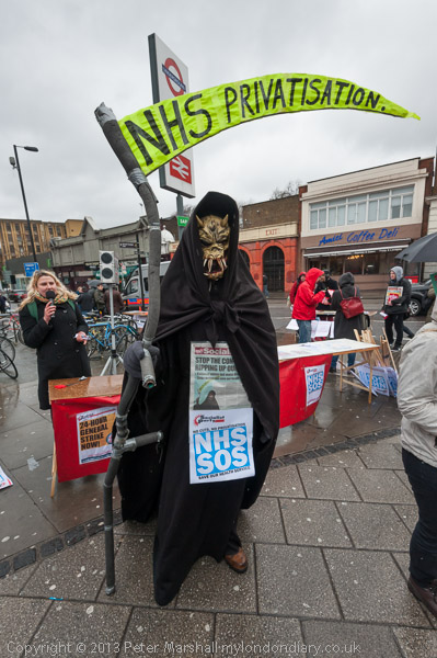 where the Grim Reaper welcomed those going on the march with his scythe with the message 'NHS privatisation'
