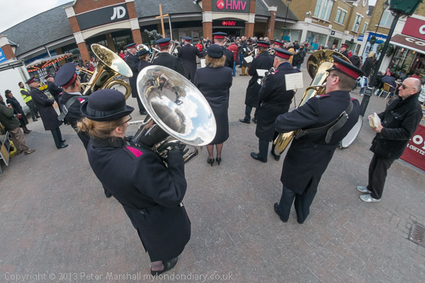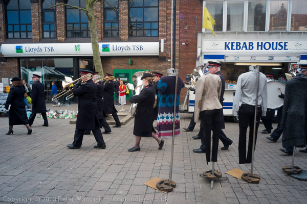 The Salvation Army band leads the procession onto Thames St