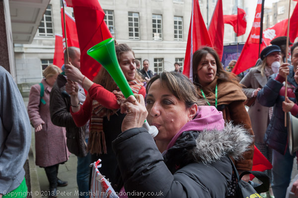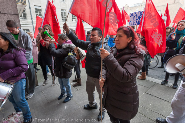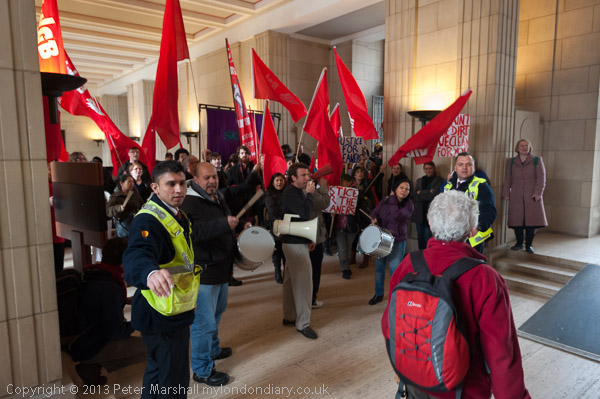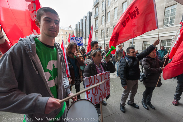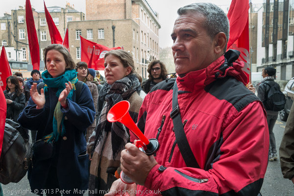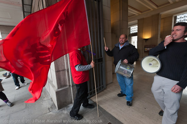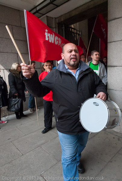 The protesters, many carrying IWGB flags walked towards the Senate House entrance