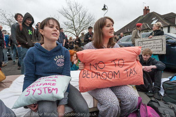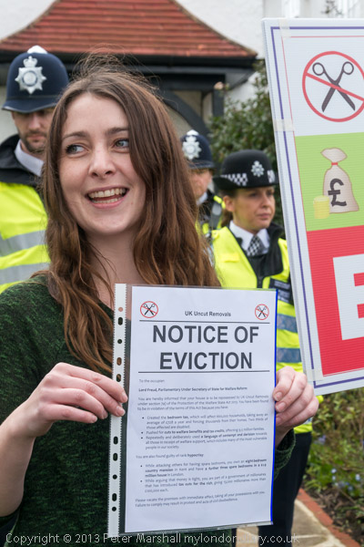 ![]() A jubilant reaction to the news that disabled activists from DPAC have just delivered an eviction notice to ![]() Ian Duncan Smith's country residence. ![]() There was a sofa bed, a few chairs and a mattress on the street ![]() And some people had brought pillows 'No To Bedroom Tax' on this one ![]() The Removal men had come with boxes ![]() But the police were not letting them get on with the job ![]() The 'Notice of Eviction' for Lord Freud (or Lord Fraud as he is better known) ![]() And the UK Uncut Removals sign 'Millionaire Evicted' ![]() ![]() |
