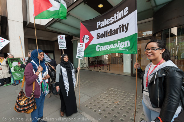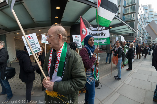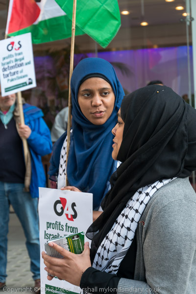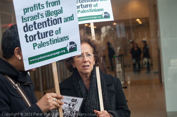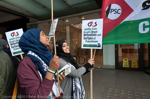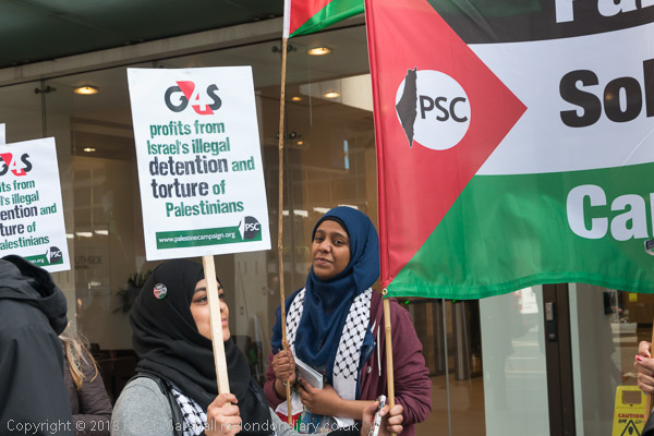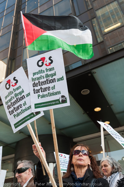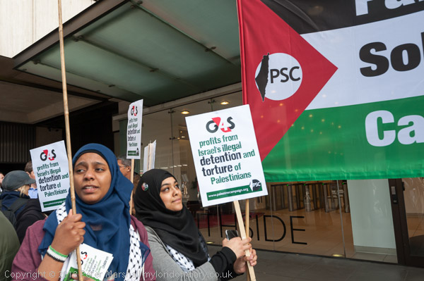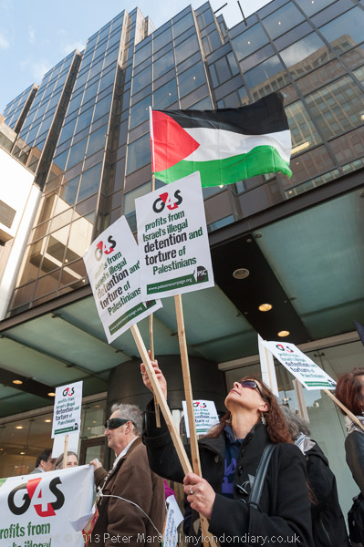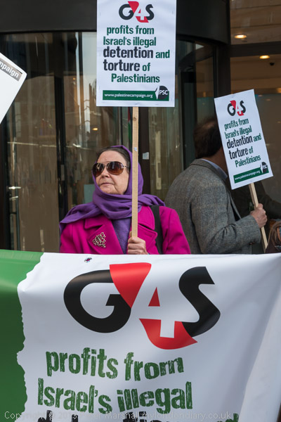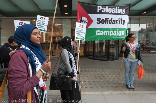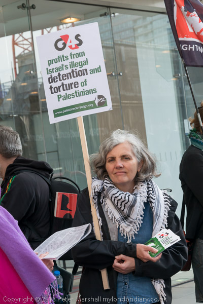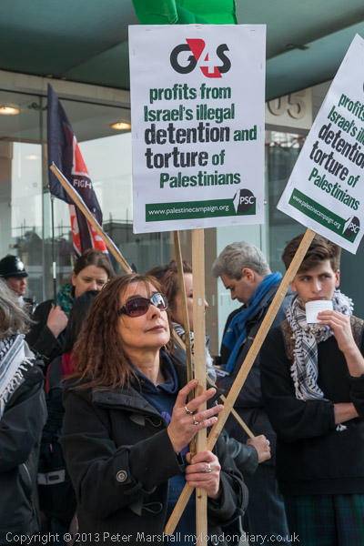 The crowd of protesters on the wide pavement outside the G4S offices was slowly growing