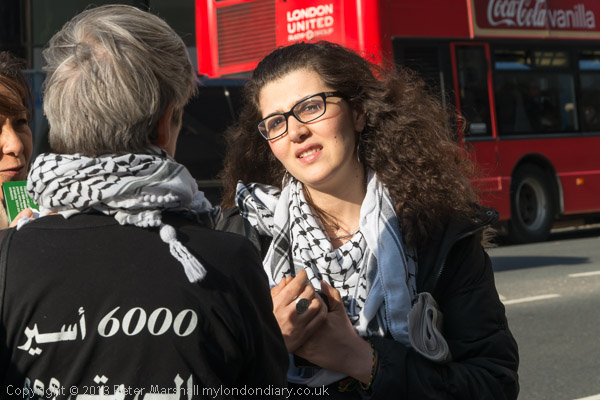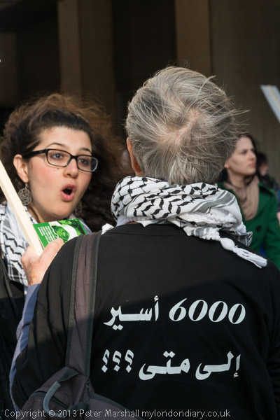 The Arabic t-shirt gives the number of Palestinian prisoners as 6000