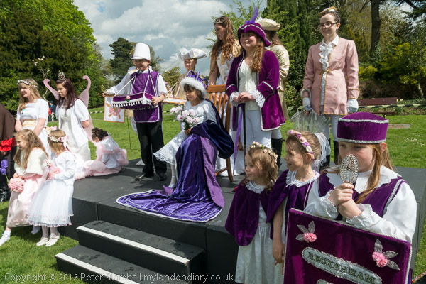The Beckenham May Queen and her group pose for pictures after she has been crowned