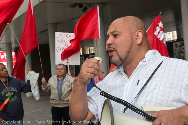 ![]() ![]() ![]() Alberto Durango speaking about the cleaner's greivances - ![]() and the refusal of ISS to discuss the issue of racism in the workplace ![]() More protesters arrive ![]() including some very young ones ![]() ![]() ![]() |