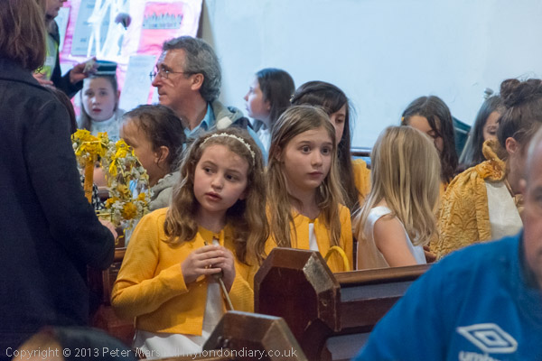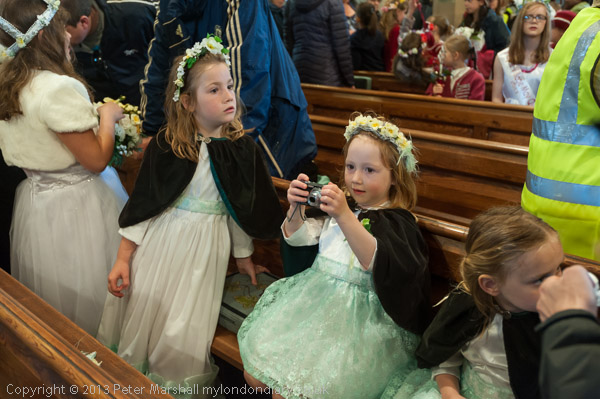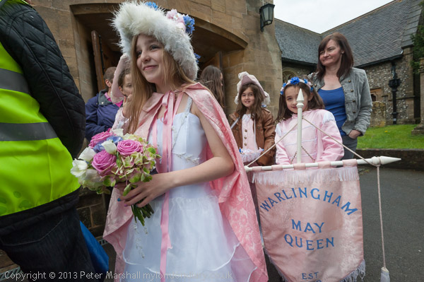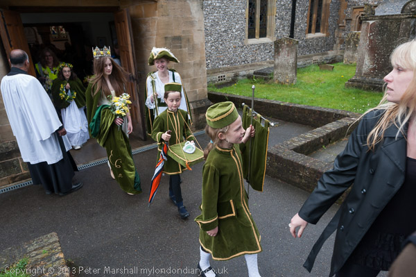 The Rector talks to the May Queen groups as they leave the church