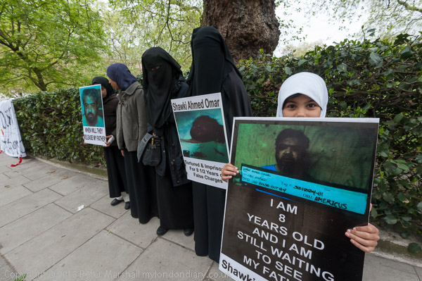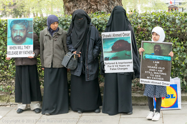 ![]() This vigil takes place every weekend - see Lonely Vigil at US Embassy ![]() Narmeen Saleh Al Rubaye, wife of Shawki Ahmed Omar, and their 7 year old daughter Zeinab, standing alone outside the US embassy. ![]() A Muslim man talks with Omar's wife through her daughter ![]() Zeinab, Omar''s daughter spoke at the Guantanamo 'Murder Scene' protest saying she wanted her Daddy to be released ![]() Muslims arrive to protest at the US embassy and to show solidarity with the protest to release Shawki Ahmed Omar. ![]() ![]() ![]() ![]() ![]() ![]() ![]() ![]() ![]() ![]() ![]() ![]() ![]() |