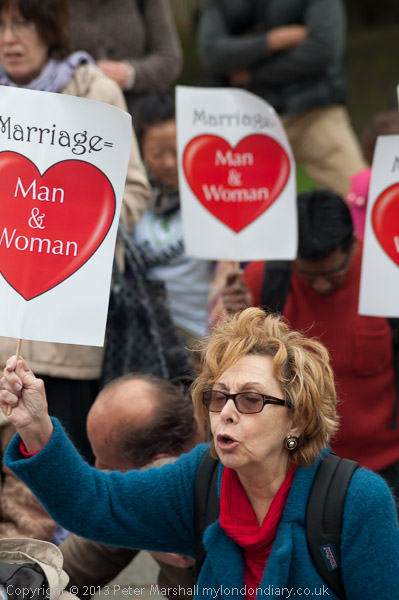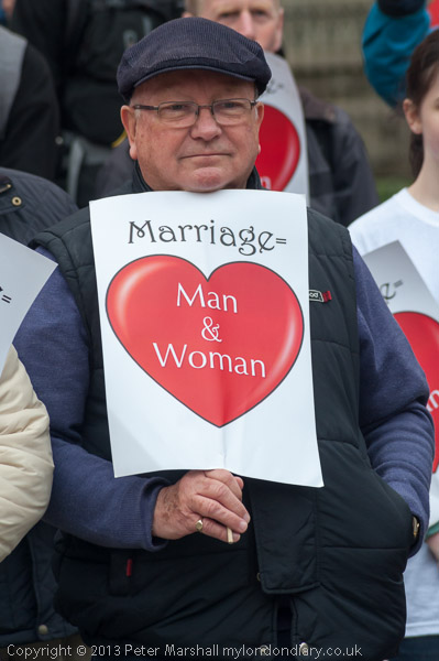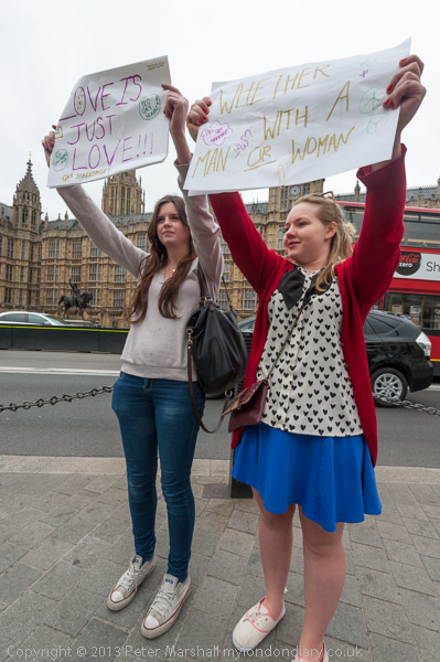 Two women staged their own small counter-protest: 'Love is just Love' and 'Marriage for All'