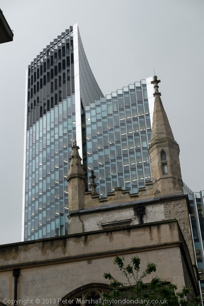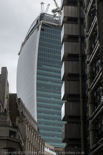 The Cheesegrater still under construction - and at right, the Heron Tower