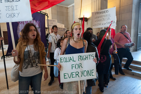 There was a placard in Polish specially for the Polish woman who was on duty watching the protest