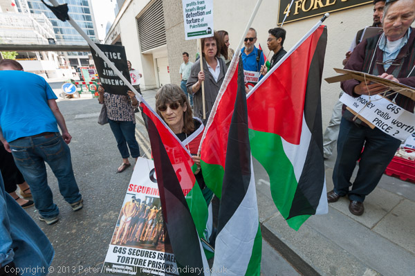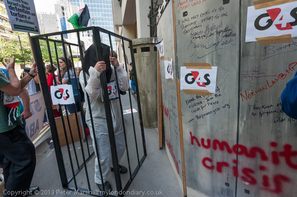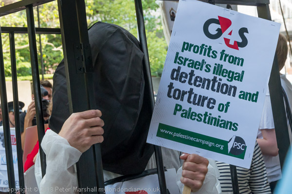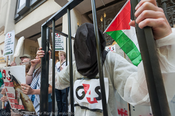 'G4S profits from Israel's illegal detention and torture of Palestinians ' - a PSC placard