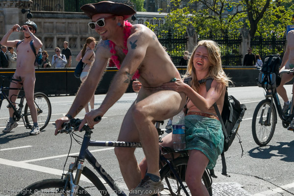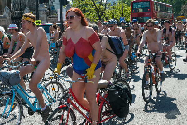 ![]() ![]() ![]() ![]() ![]() ![]() The ride had moved off and I was on my way to Westminster station when another group of naked riders ![]() came around the corner - the riders from Marble Arch had finally made it after their delayed start. ![]() |