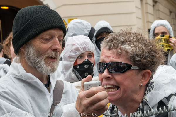 The final stop for more speeches was outside QinetiQ, just around the corner,