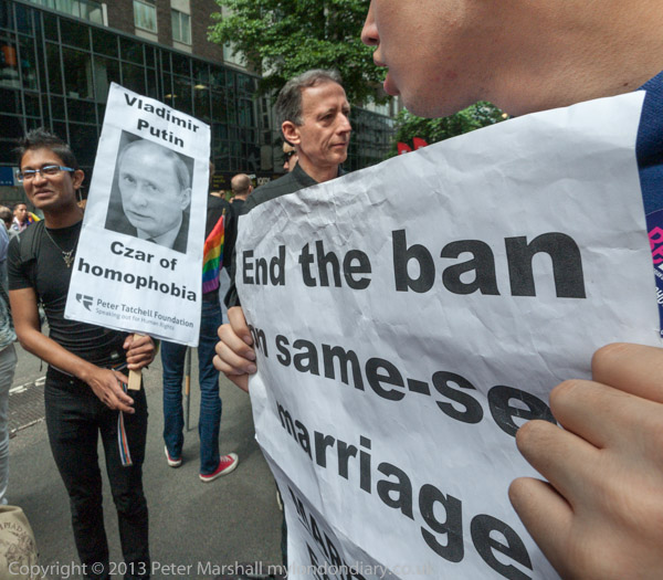And Peter Tatchell is there too with his placard 'Vladimir Putin - Czar of homophobia'