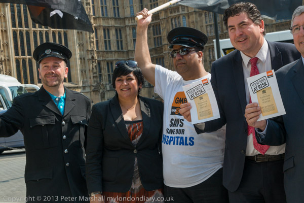 MPs hold up the GMB 'Your NHS At Risk' flyer