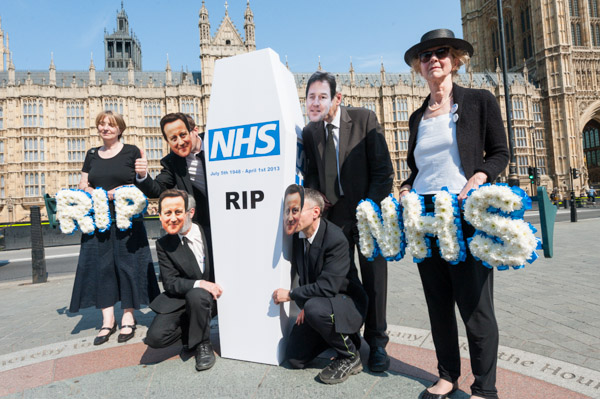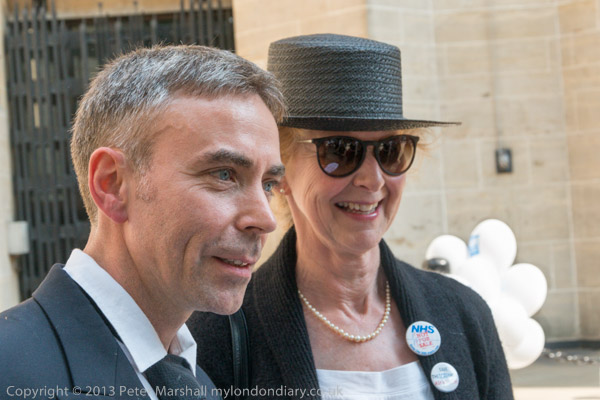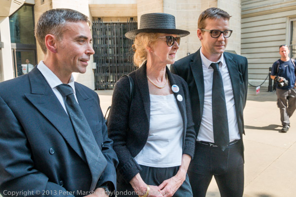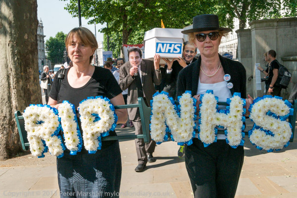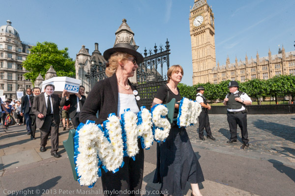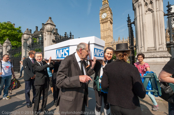 The funeral procession gets ready and then marches across the road to pose at Downing St