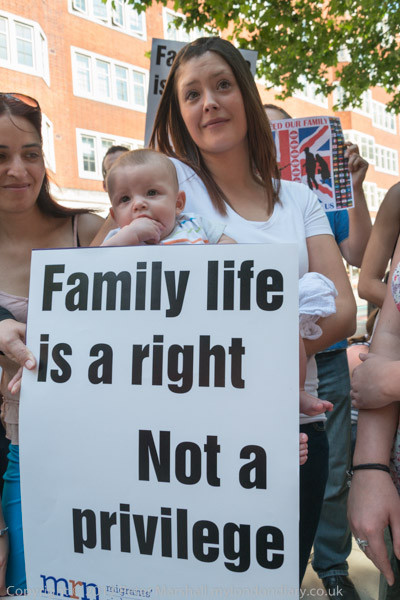 Most of those at the protest were from families where one person cannot get permisison to live in the UK